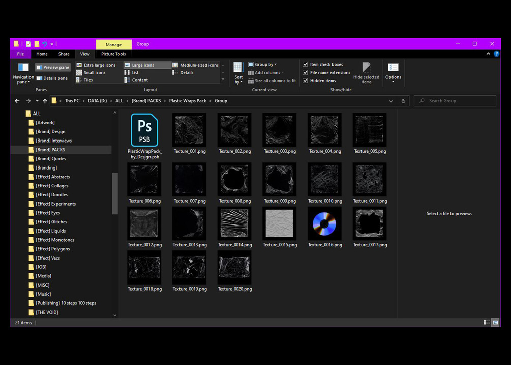 Contains 15 ultra high quality plastic wrap textures with extra CD Scan (4000x 4000x)